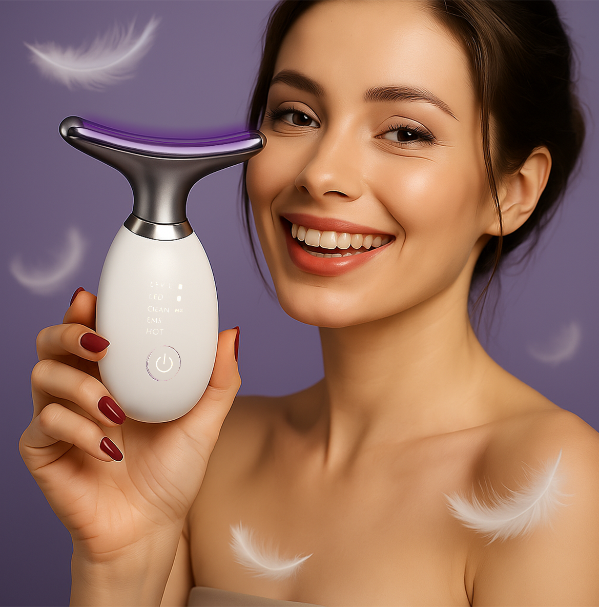 Pajisja jonë 7-në-1 kombinon nxehtësi, dritë LED dhe mikro-stimulim për kujdes të thellë të të gjitha shtresave të lëkurës – nga epidermisi deri te tonusi muskulor. Një kombinim perfekt për pastrim, shtrëngim dhe revitalizim.